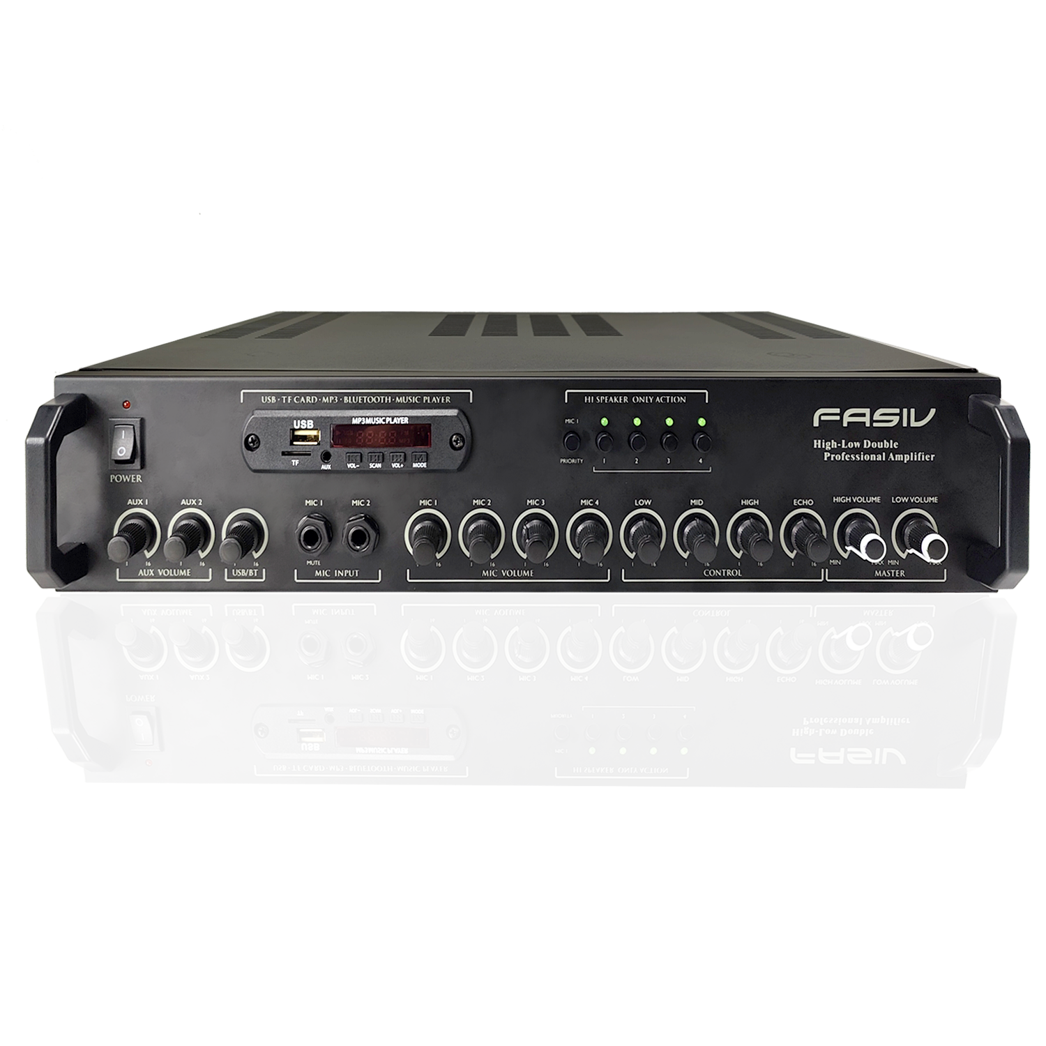 这是一个一体化系统,包括混响、区域选择、功率放大2ch模块,可以单独控制主输出端的高阻抗和低阻抗输出。