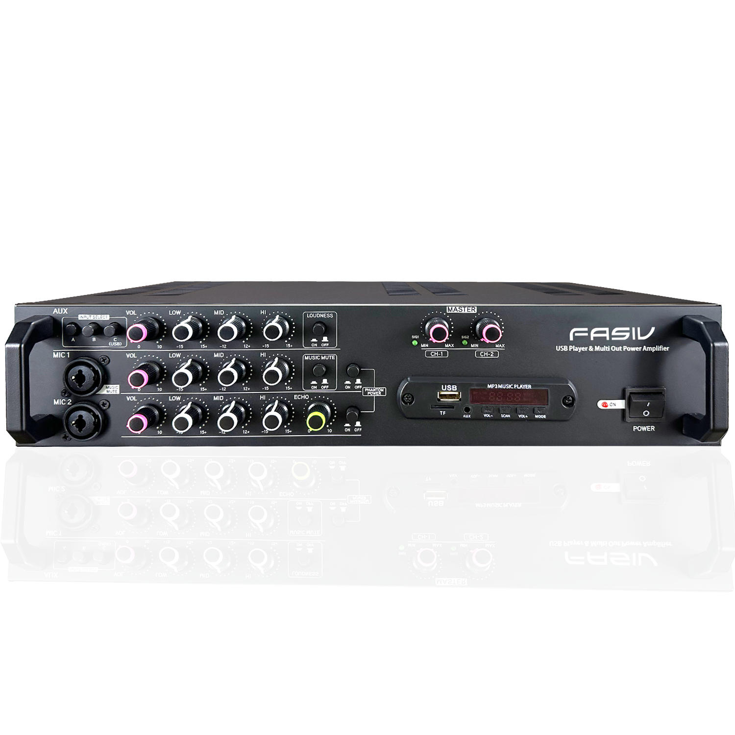 Built-in heavy duty power transistor,Bluetooth, USB, Music Mute, Phantom MIC, Perfect over-current protection,Improved voice bands make the tone more perfect.